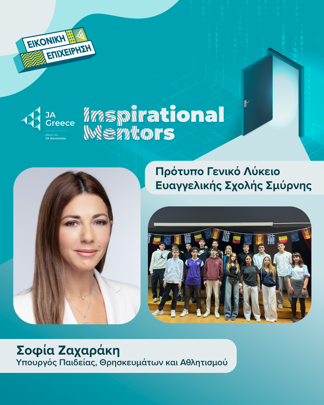 Η Υπουργός Παιδείας, Θρησκευμάτων και Αθλητισμού και άλλες 53 κορυφαίες προσωπικότητες Ιnspirational Mentors JA Greece 2026 σε μαθητικές «start-up»