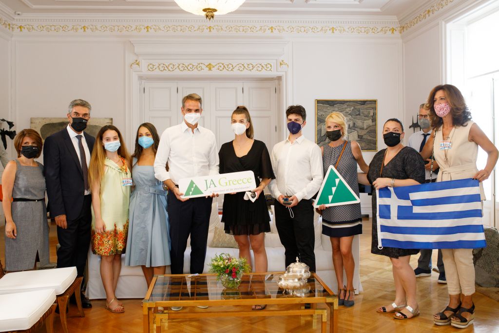 Ο Πρωθυπουργός Κυριάκος Μητσοτάκης προσκάλεσε στο Μέγαρο Μαξίμου και συνεχάρη τις «start up» Swim.me και FlowOnπου κατέκτησαν το χρυσό και το αργυρό «μετάλλιο» στους Πανευρωπαϊκούς Διαγωνισμούς Καινοτομίας και Επιχειρηματικότητας του JA Europe – GEN-E. Από το Γραφείο του Πρωθυπουργού εστάλη στα ΜΜΕ αναλυτική ανακοίνωση με όλα όσα ειπώθηκαν στη συνάντηση κατά την οποία ο Πρωθυπουργός μίλησε με τα θερμότερα λόγια για το JuniorAchievement Greece. Η είδηση μεταδόθηκε στο σύνολο των Μέσων Μαζικής Ενημέρωσης και προβλήθηκε στα δελτία ειδήσεων όλων των τηλεοπτικών σταθμών. Στην ανακοίνωση χαρακτηριστικά αναφέρεται: «Για εμάς είναι πάρα πολύ δημιουργικό να βλέπουμε ειδικά στα σχολεία μας να αναπτύσσεται η έννοια της δημιουργικής επιχειρηματικότητας.‘Έχω μιλήσει σε πολλές ομάδες νέων παιδιών που έχουν ασχοληθεί με αυτή τη διαδικασία. Μας κάνατε περήφανους ως χώρα», ανέφερε ο Πρωθυπουργός. Ο Κυριάκος Μητσοτάκης συζήτησε με τους νέους για τις «start-up» και τα δημιουργήματα που ανέπτυξαν. Ειδικότερα, για τη Swim.me που απέσπασε το πρώτο βραβείο στον Πανευρωπαϊκό Διαγωνισμό Φοιτητικής Καινοτομίας και Επιχειρηματικότητας JA Europe Enterprise Challenge 2021 με το «έξυπνο» σκουφάκι για άτομα με προβλήματα όρασης και τη FlowOn που κέρδισε το δεύτερο βραβείο στον Πανευρωπαϊκό Διαγωνισμό Μαθητικής Καινοτομίας και Επιχειρηματικότητας JA Europe Company of the Year 2021 με την «έξυπνη βρύση» που καταπολεμά τη σπατάλη νερού και τη μετάδοση μικροβίων. «Μας κάνατε περήφανους. Αντιλαμβάνεσαι ότι όλα ξεκινάνε από μία ιδέα, αλλά απαιτείται και πάρα πολύ δουλειά για να φτάσει στο σημείο της υλοποίησης. Όλη αυτή η διαδικασία: πώς οργανώνεις μία ομάδα, πώς σκέφτεσαι να στήσεις μία επιχείρηση, βλέπεις την περιπλοκότητα πίσω από την παραγωγή ενός νέου προϊόντος ή μιας νέας υπηρεσίας. Νομίζω ότι όλα αυτά είναι πολύ χρήσιμα μαθήματα, τα οποία θα σας συνοδεύουν για μία ζωή», σημείωσε ο κ. Μητσοτάκης προσθέτοντας πως «θέλουμε κι εμείς τέτοιες έννοιες, της δημιουργικής επιχειρηματικότητας, να τις διδάσκουμε πολύ περισσότερο στα σχολεία».
