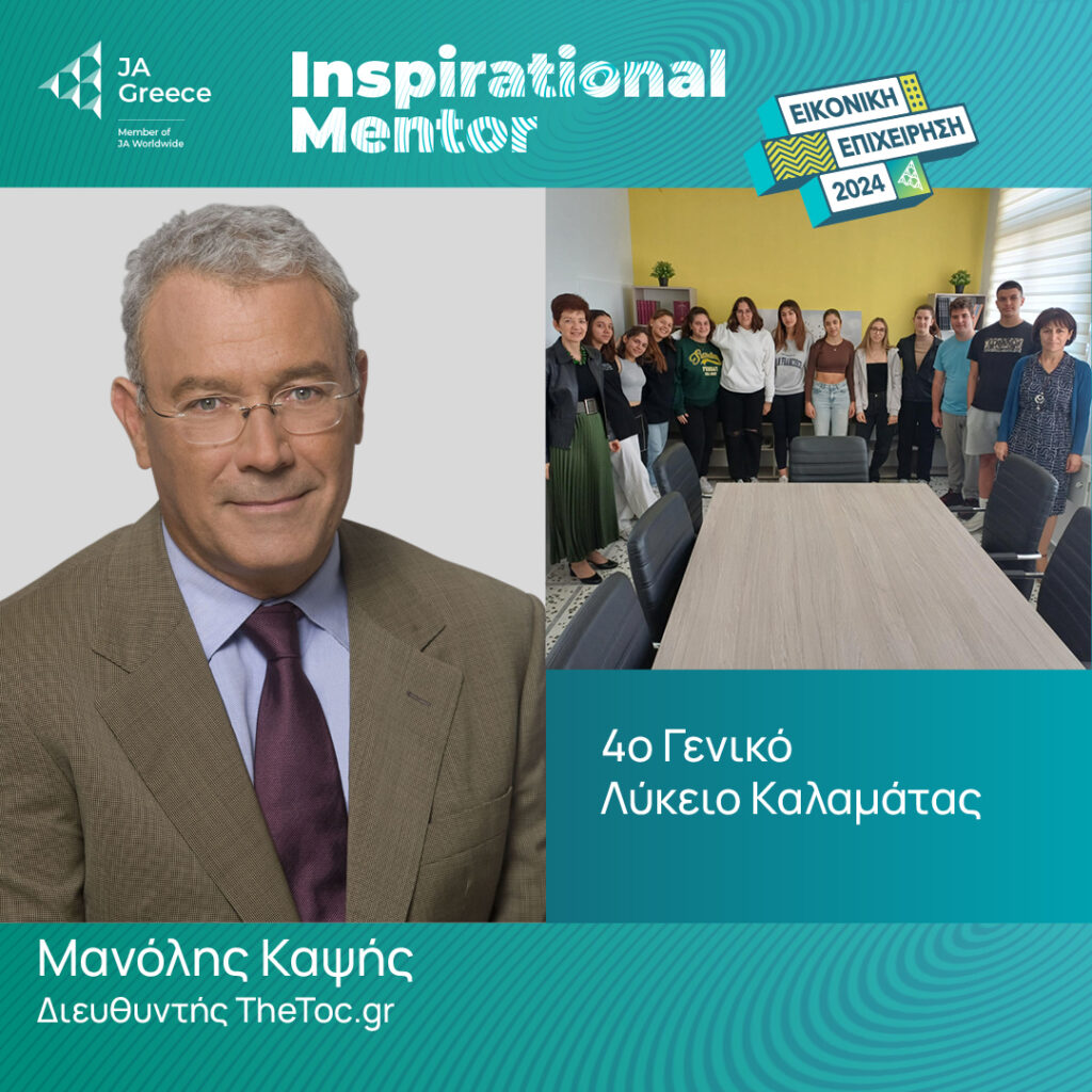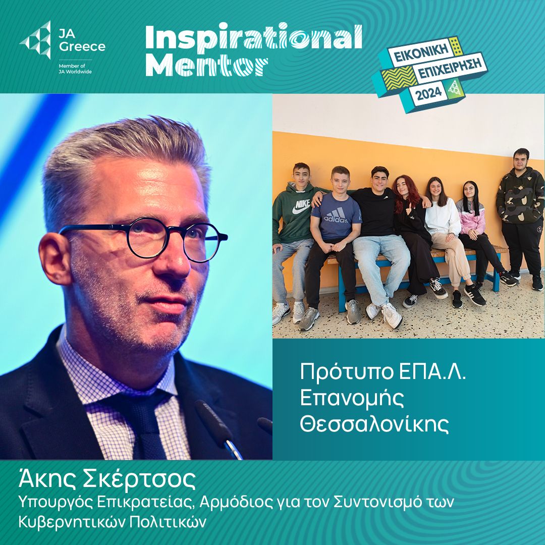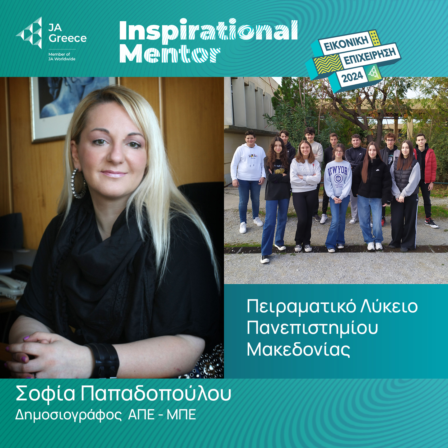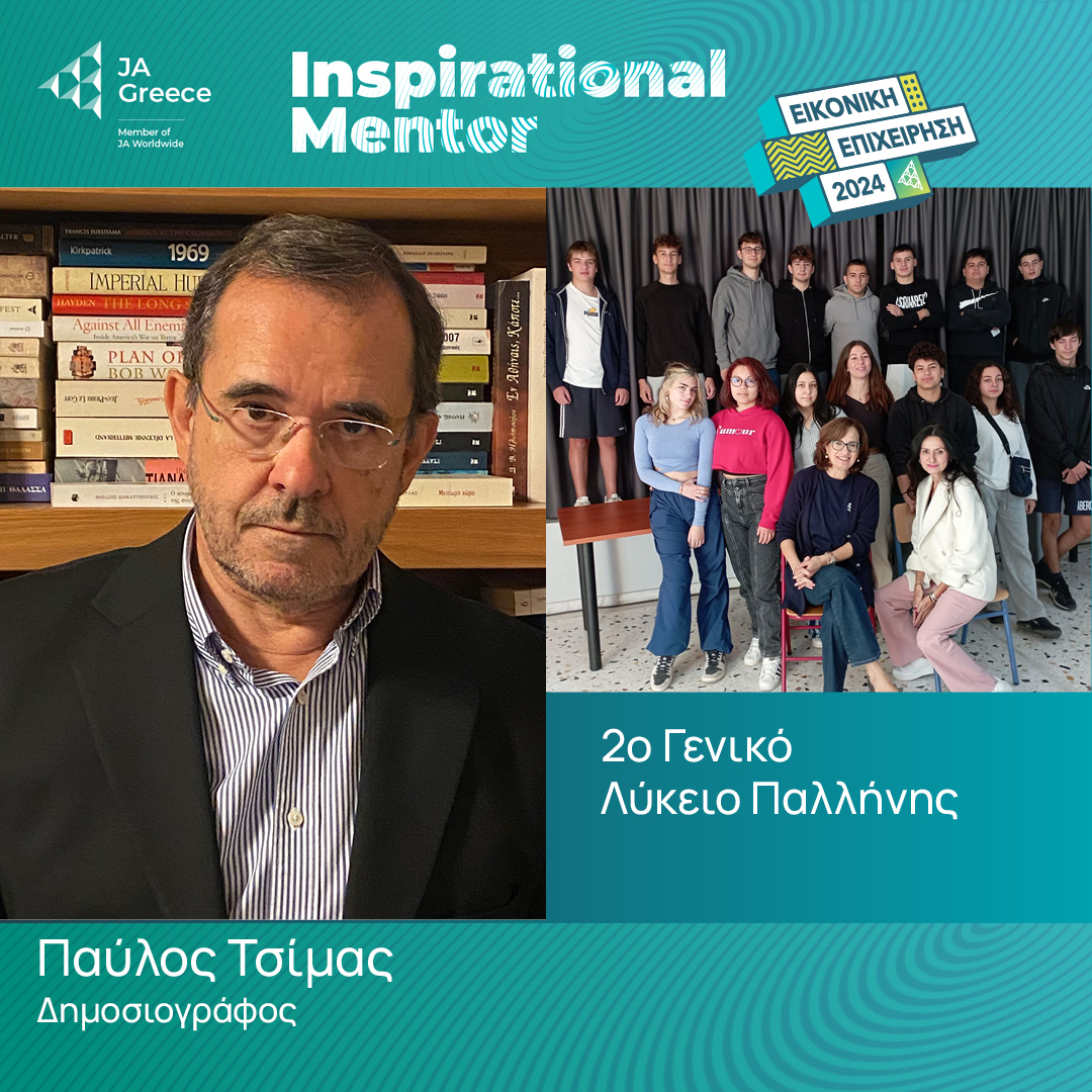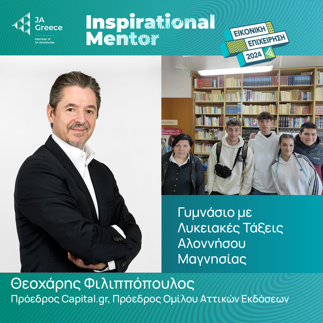 O μη κερδοσκοπικός οργανισμός μαθητικής επιχειρηματικότητας Junior Achievement Greece προσκάλεσε, για τρίτη συνεχόμενη σχολική χρονιά, κορυφαίες προσωπικότητες της Ελλάδας από τον πολιτικό, επιχειρηματικό και δημοσιογραφικό χώρο να εμπνεύσουν και να υποστηρίξουν μαθητικές «start up» που συμμετέχουν στο δημοφιλές, παγκόσμιο εκπαιδευτικό πρόγραμμα/μαθητικό διαγωνισμό «Εικονική Επιχείρηση – JA Company Program 2024» για μαθητές – μαθήτριες από 15 έως και 18 ετών κατά την τρέχουσα σχολική χρονιά 2023-2024.